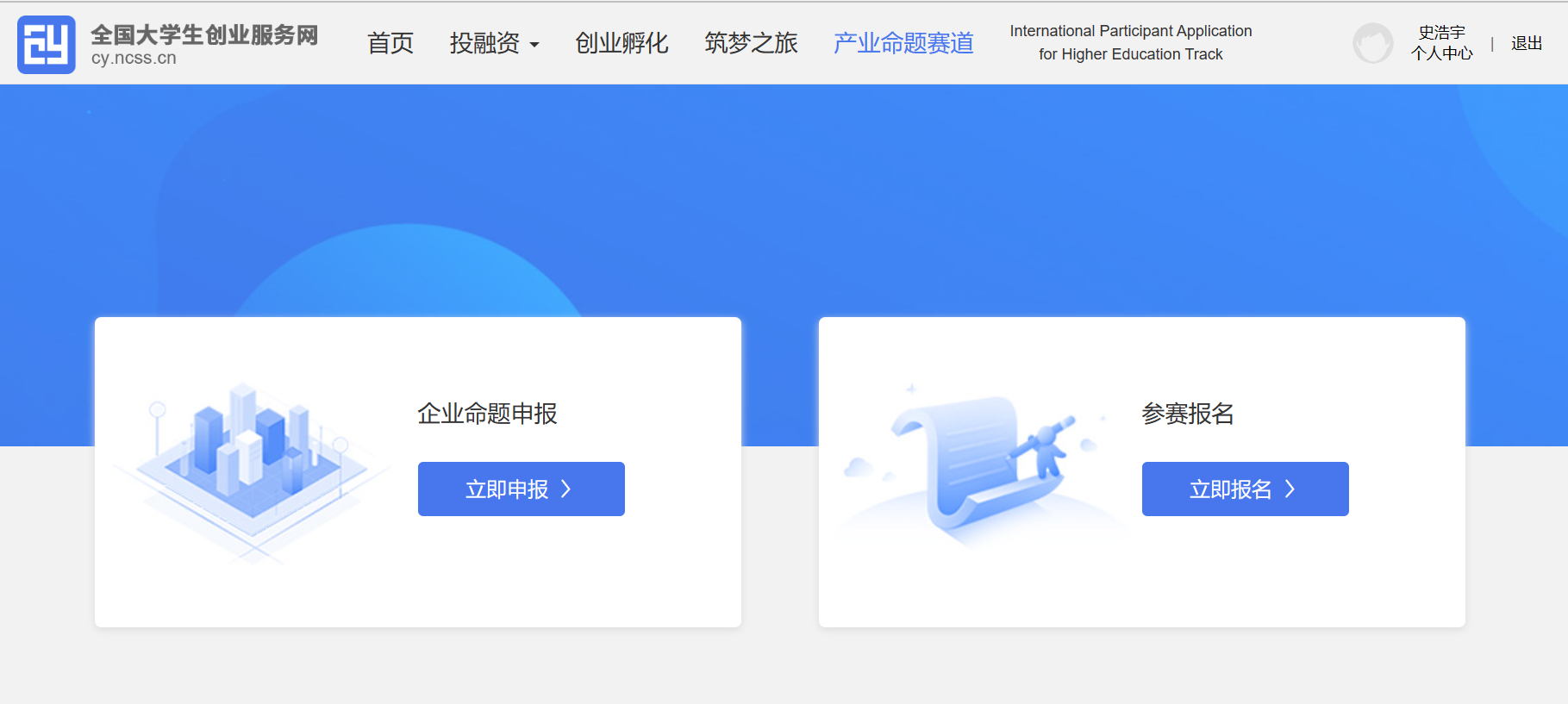 1.登錄大賽官網(wǎng):進(jìn)入全國(guó)大學(xué)生創(chuàng)業(yè)服務(wù)網(wǎng)(https://cy.ncss.cn/)注冊(cè)賬號(hào)并登錄。
