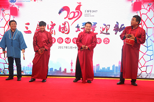 2017年春節(jié)前,西安三好股份特舉辦了一場別開生面的年會,邀請所有員工及其家屬一起,熱熱鬧鬧的慶賀丁酉新年的到來。有歌舞、有相聲,有小品、有互動,既獎勵了2016年的優(yōu)秀同事,也為2017年的工作畫出新的藍(lán)圖!今天,讓我們來回顧一下年會的精彩盛況: