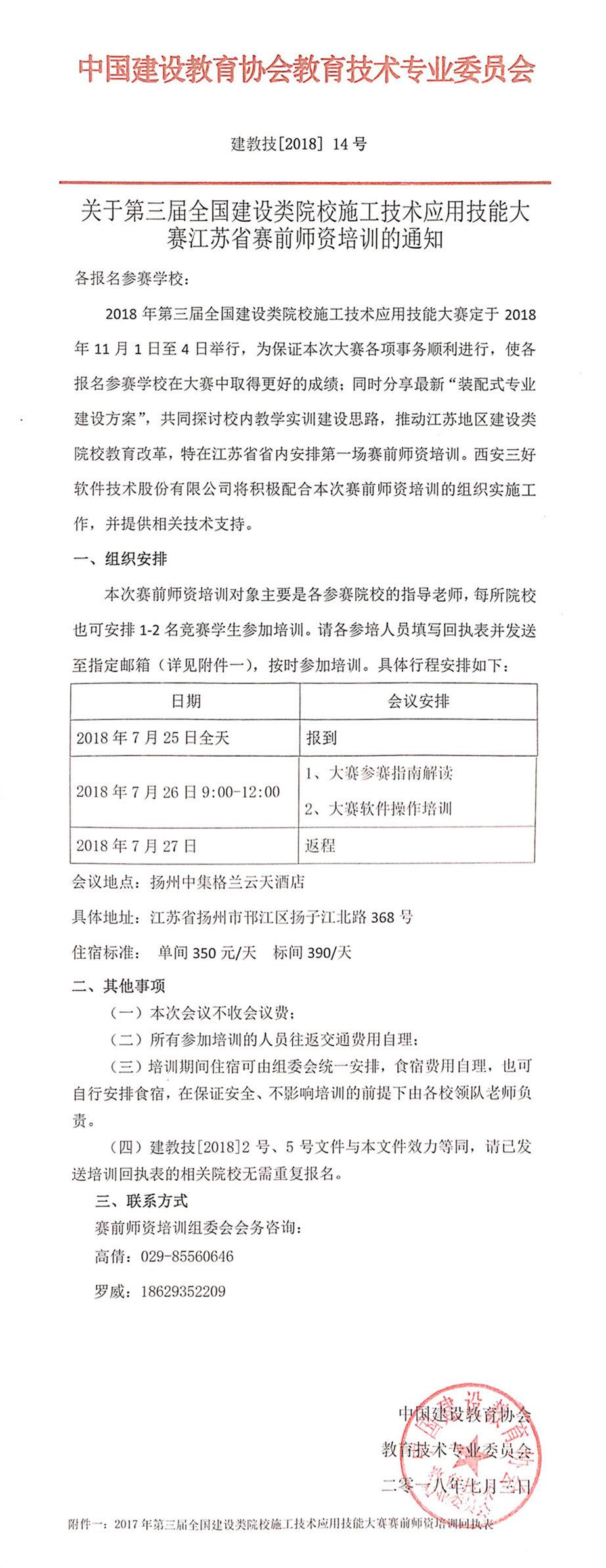 為了保證第三屆全國大賽各項事務(wù)順利進行,同時推動江蘇省建設(shè)類院校課程教育課改,探討江蘇省建設(shè)類院校校內(nèi)教學實訓(xùn)基地建設(shè)思路,中國建設(shè)教育學會教育技術(shù)專業(yè)委員會經(jīng)研究決定于2017年7月25日-27日在揚州中集格蘭云天酒店舉辦“第三屆全國建設(shè)類院校施工技術(shù)應(yīng)用技能大賽江蘇省賽前師資培訓(xùn)活動”,歡迎相關(guān)院校報名參與!