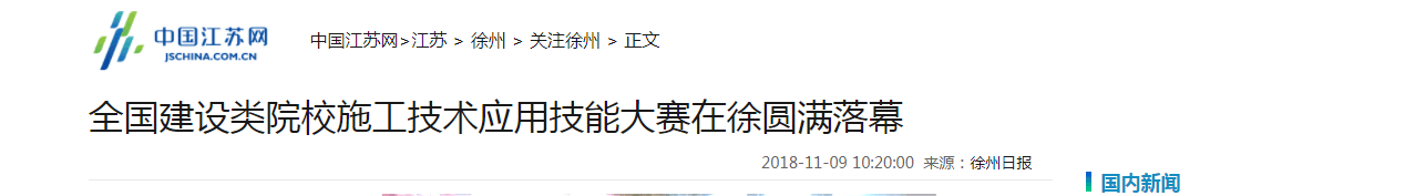 2018年11月1日-4日,第三屆全國建設類院校施工技術應用技能大賽在江蘇建筑職業(yè)技術學院成功舉辦,共有來自全國的181所高校,1411位建設類相關專業(yè)師生參與此次大賽。