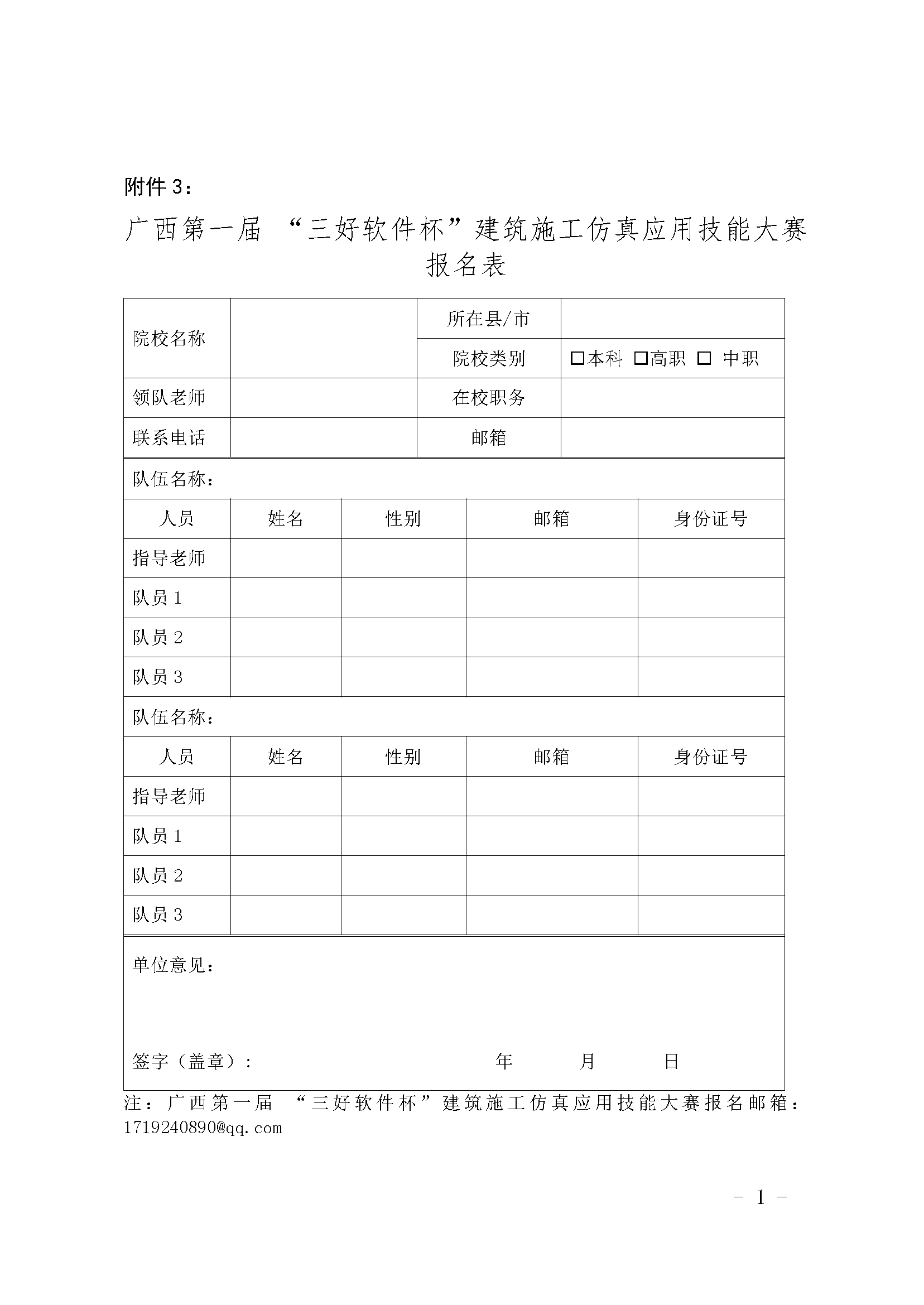 點擊下載廣西第一屆 “三好軟件杯”建筑施工仿真應用技能大賽報名表