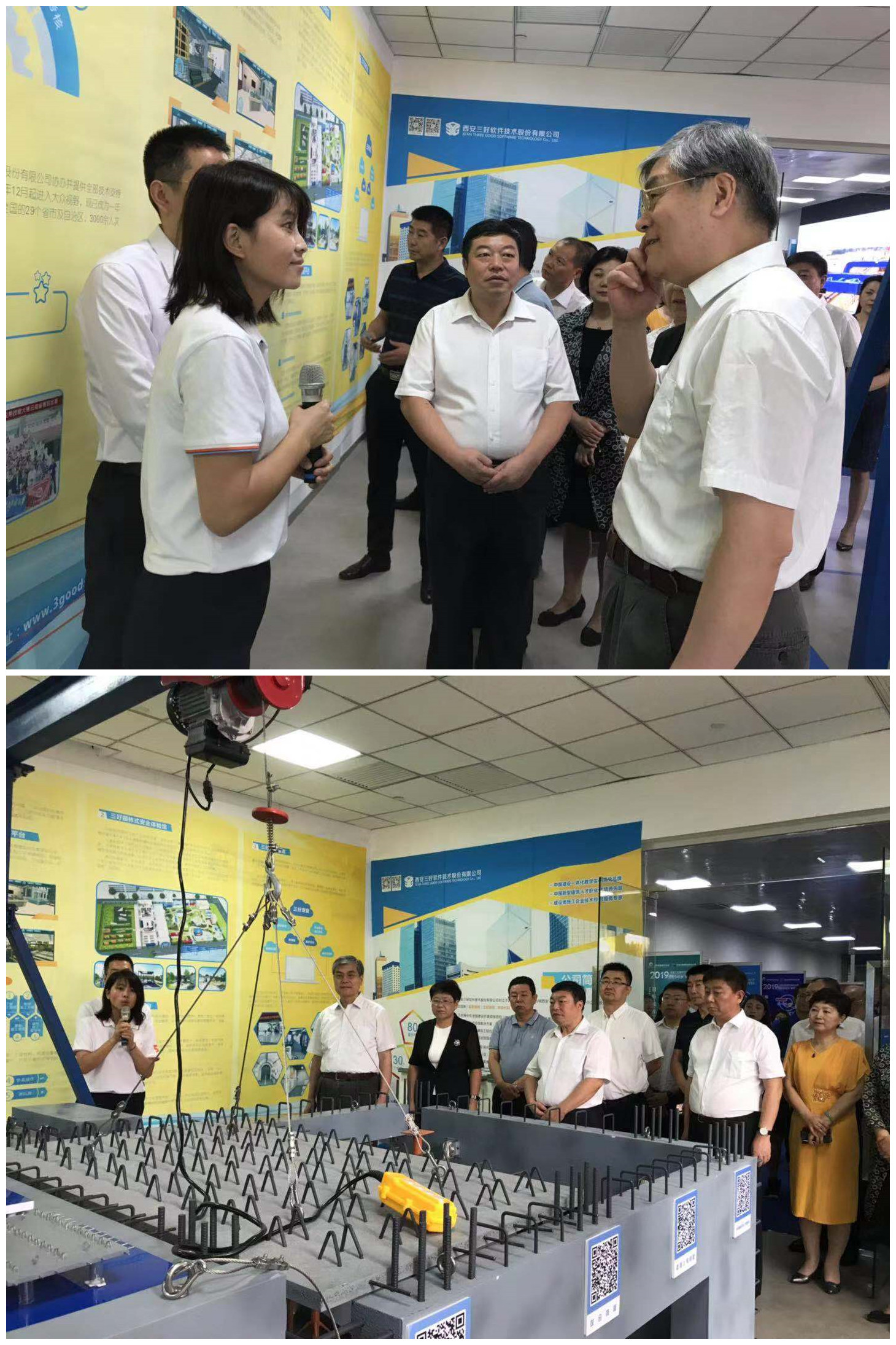 西安市政府副市長馬鮮萍、中國工程院院士潘云鶴、碑林區(qū)委書記劉其智等領(lǐng)導(dǎo)嘉賓參觀 “三好建筑信息一體化實(shí)訓(xùn)教學(xué)基地”展廳