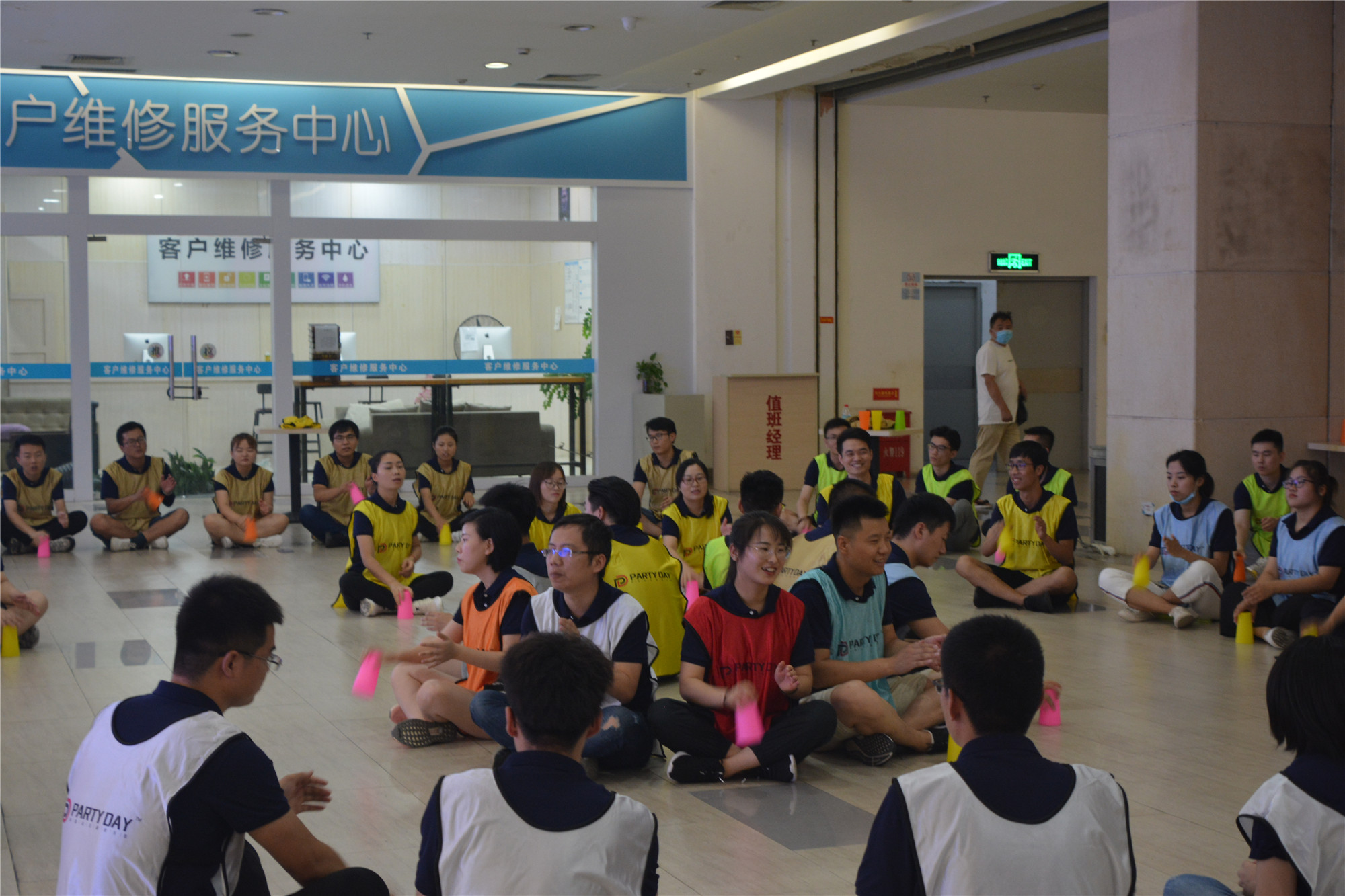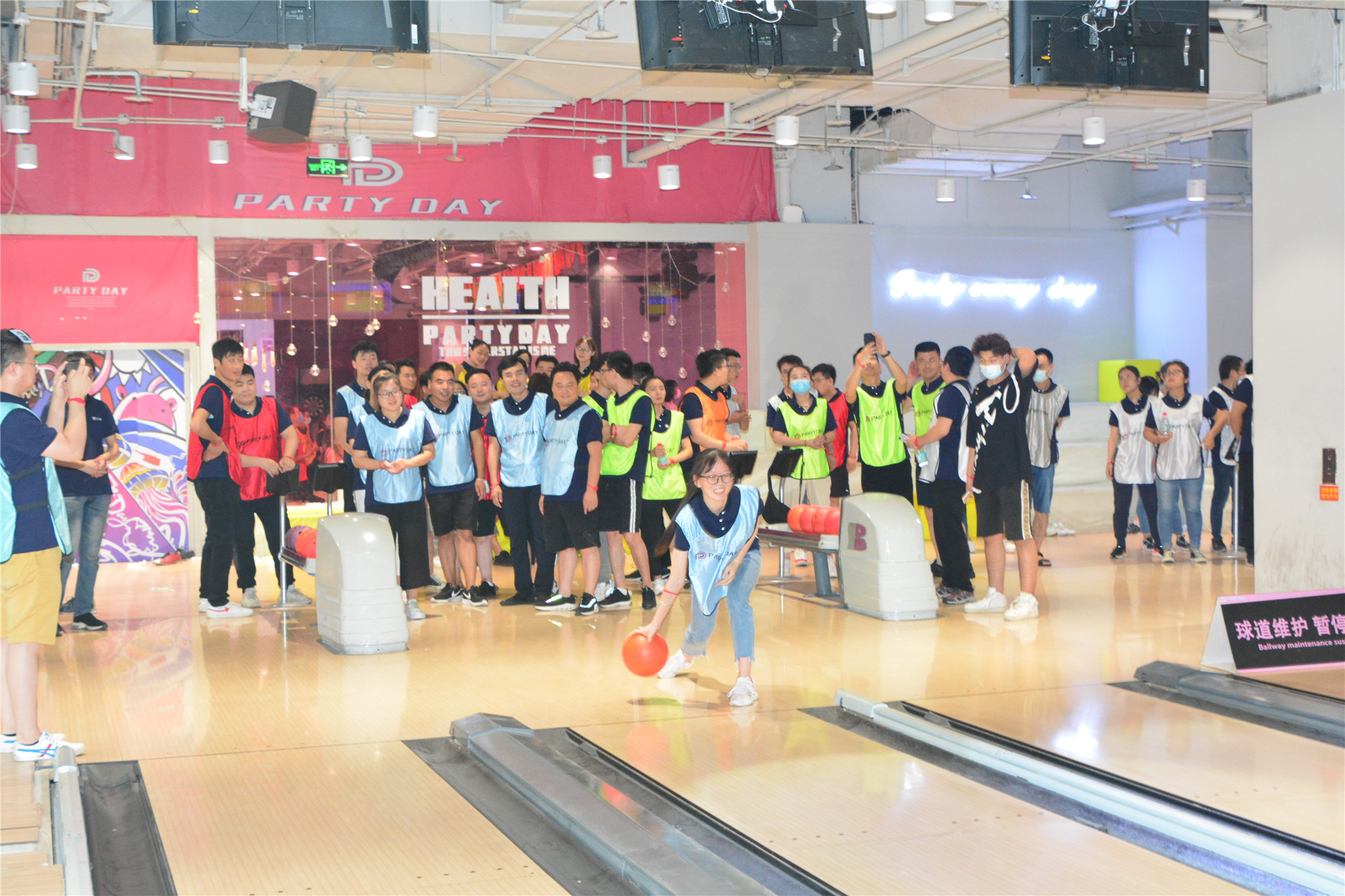 一番熱身結(jié)束后,慶典的“重頭戲”——團建環(huán)節(jié)正式開始,三好員工們分成9隊,穿上各自隊服開啟了豐富精彩的團建活動。在專業(yè)教練的帶領下,共進行了杯子舞、飛鏢機比賽、保齡球比賽等活動,團建過程中,每個員工都熱情滿滿,激動之情溢于言表。