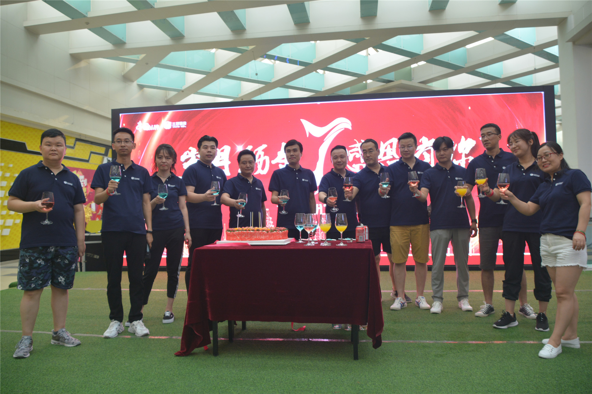 周年慶典當然離不開蛋糕與“美酒”,張總及各部門經(jīng)理在臺上舉起酒杯,在溫馨的生日歌旋律里,全體三好員工共同分享了生日蛋糕。近百人的“大家庭”伴著搖曳的燭光顯得格外溫馨,慶典也就此落下帷幕。