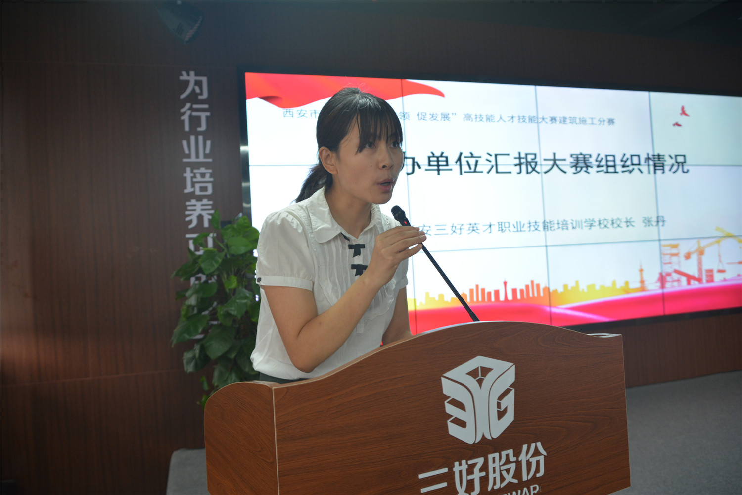 承辦單位西安三好英才職業(yè)技能培訓(xùn)學(xué)校校長張丹致歡迎詞并做大賽組織情況匯報(bào)