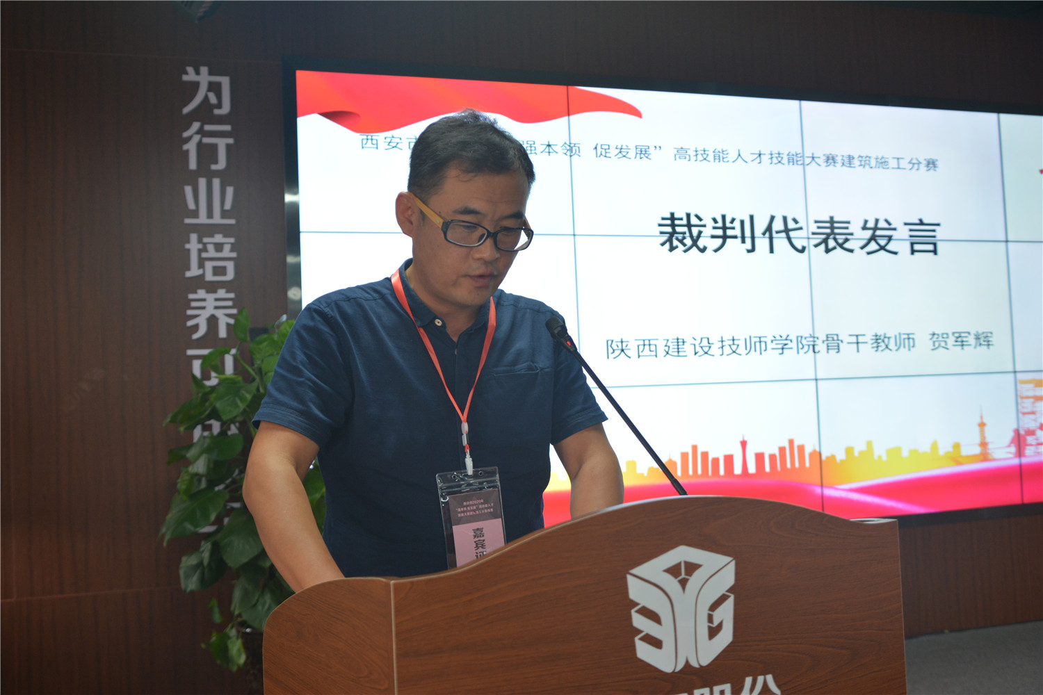 裁判代表陜西建設(shè)技師學(xué)院骨干教師賀軍輝發(fā)言